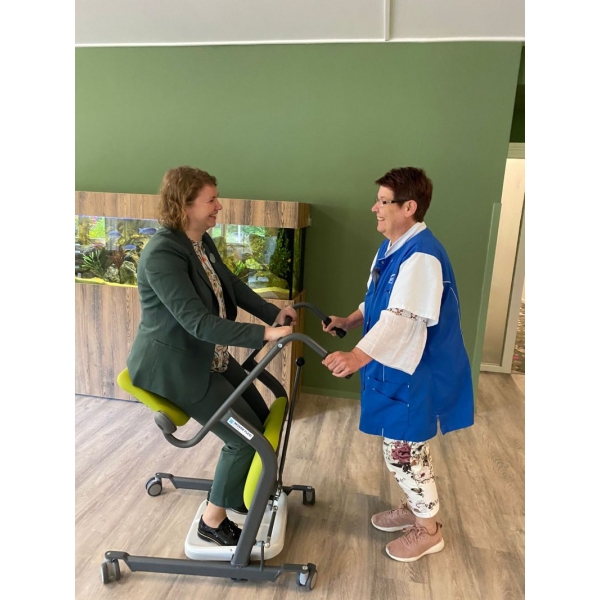 Le dispositif d'aide au transfert et à la station debout Mover est une excellente alternative à d'autres systèmes car il permet un soutien confortable grâce à ses plaques d'assise pivotantes rembourrées et ses genouillères. Le Mover permet un transport rapide, stable et sûr du patient du lit au fauteuil ou aux toilettes ou vice versa. Les roulettes arrière peuvent être bloquées à l'aide de freins. Le Mover convient au déplacements de patients qui ont des difficultés à marcher ou à se tenir debout.
