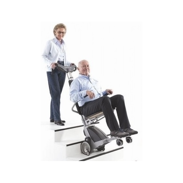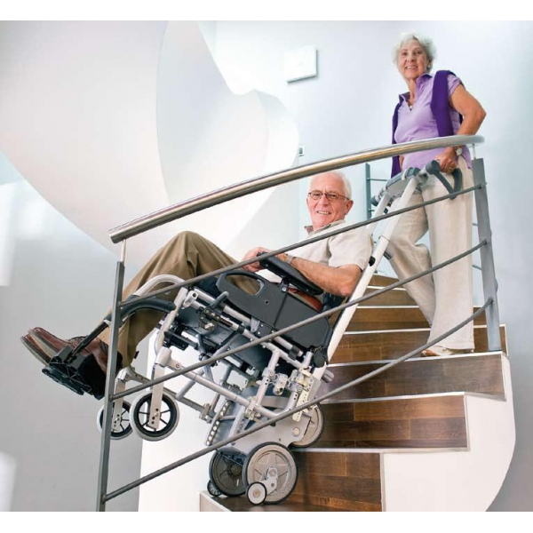 Le Scalamobil s'adapte uniquement sur les fauteuils manuels standard. Le dossier ainsi que les poignées de poussée doivent être conventionnels (pas de coque, dossier pliable ou inclinable etc.). Il peut se fixer au fauteuil roulant ou sur un siège spécialement conçu